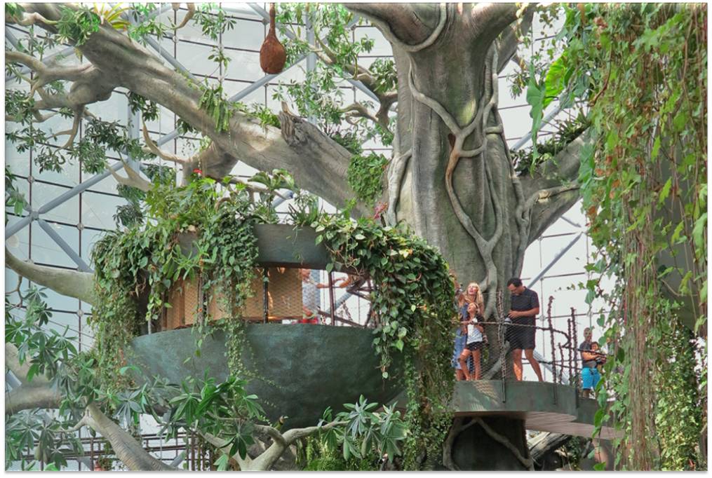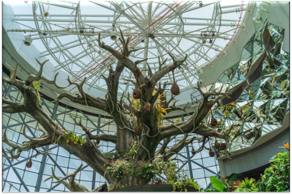 The Green Planet is a bio-dome located in City Walk Dubai, built to simulate a real tropical rainforest with high humidity, warm temperatures, and dense vegetation. It is designed around a massive, 25-meter-tall artificial life-sustaining tree, the largest of its kind in the world.